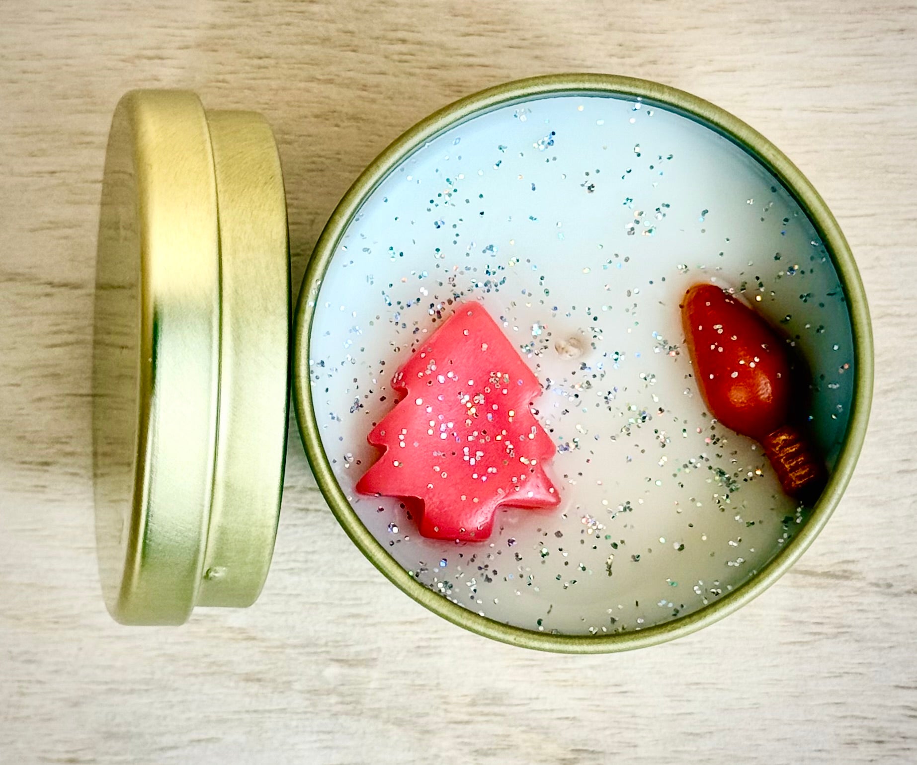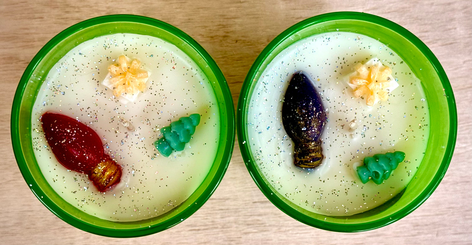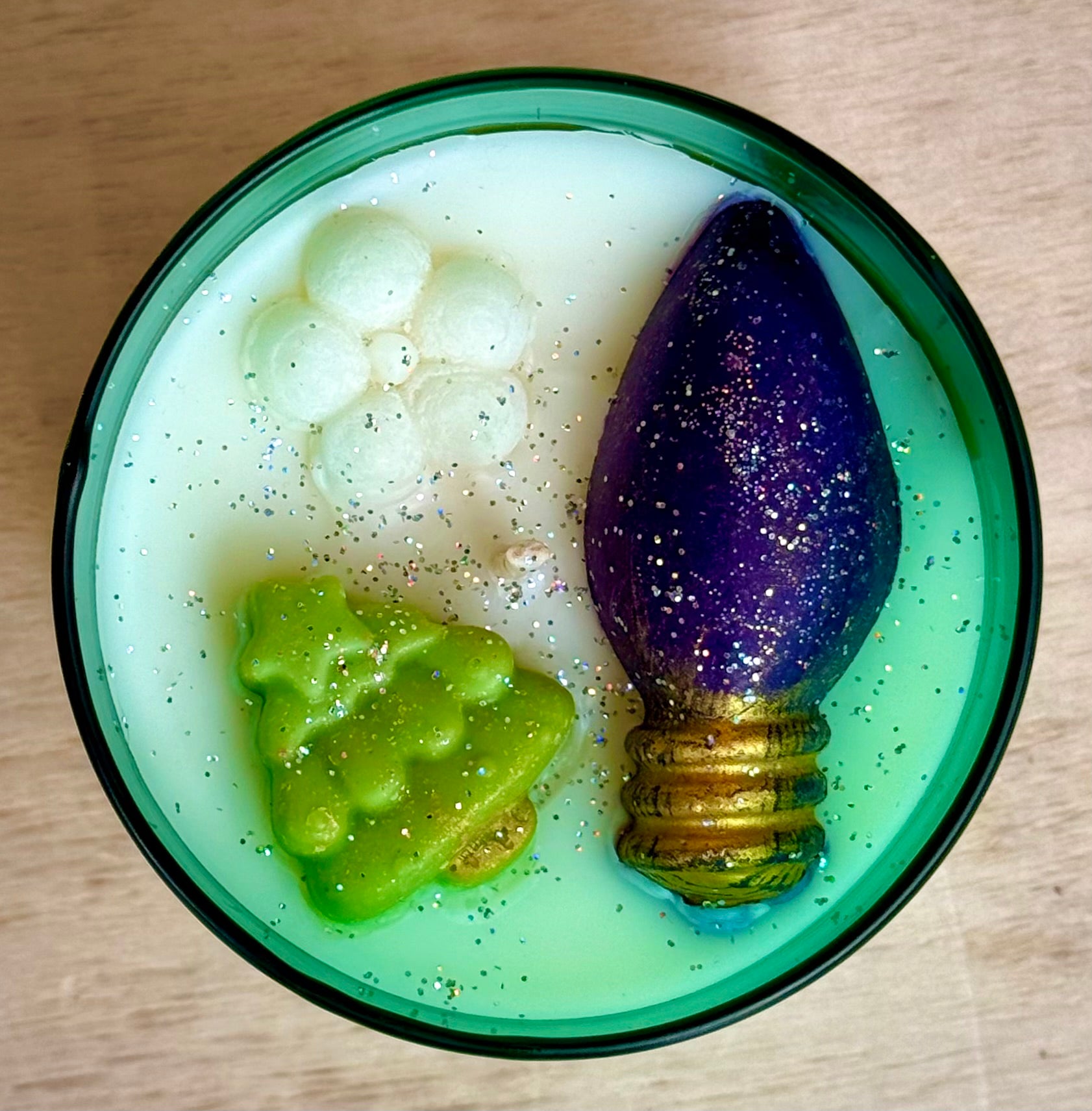 Each candle is topped with an adorable Christmas tree, a tiny light-bulb embed, and a sprinkle of festive glitter—making it as magical to look at as it is to smell.