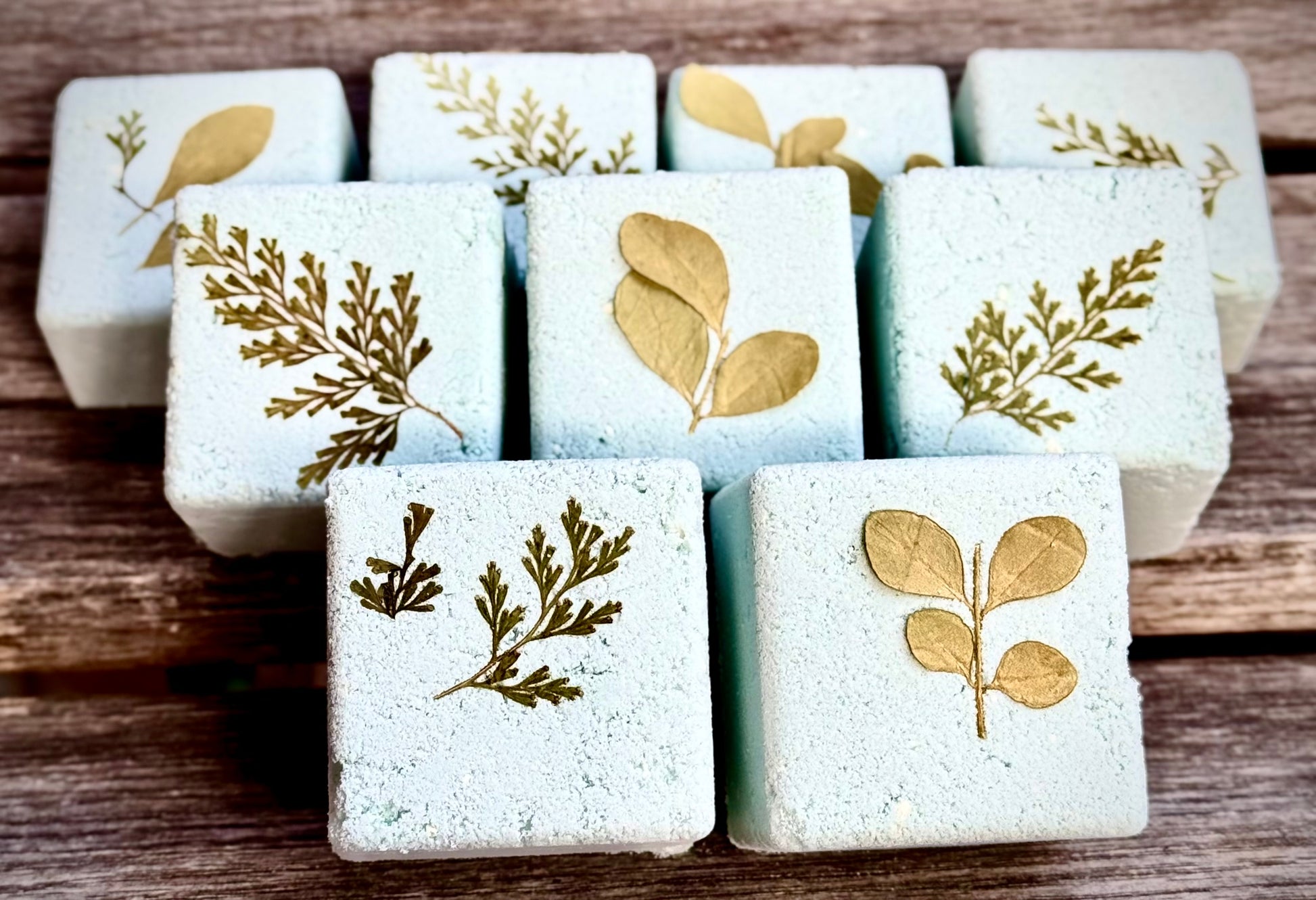 Awaken your senses with Green Flash—a bold, cube-shaped shower steamer infused with the crisp energy of lemongrass, lime, and mint. Each cube is hand-topped with a dried botanical leaf, adding a touch of natural beauty to your self-care ritual.