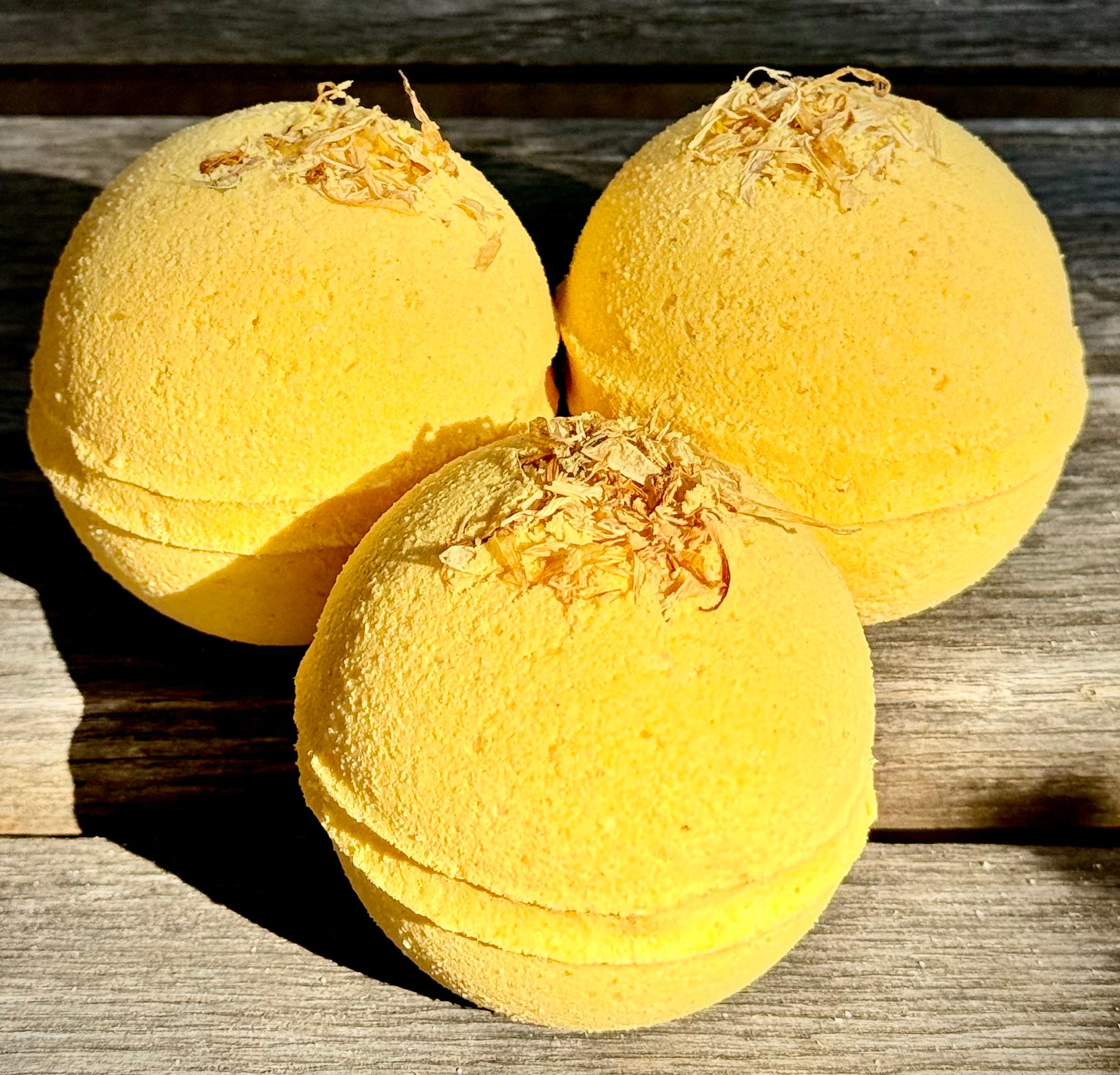 Rounded Bath Bomb – A classic bomb, still topped with marigold petals and all the fizz, fragrance, and fun you crave.