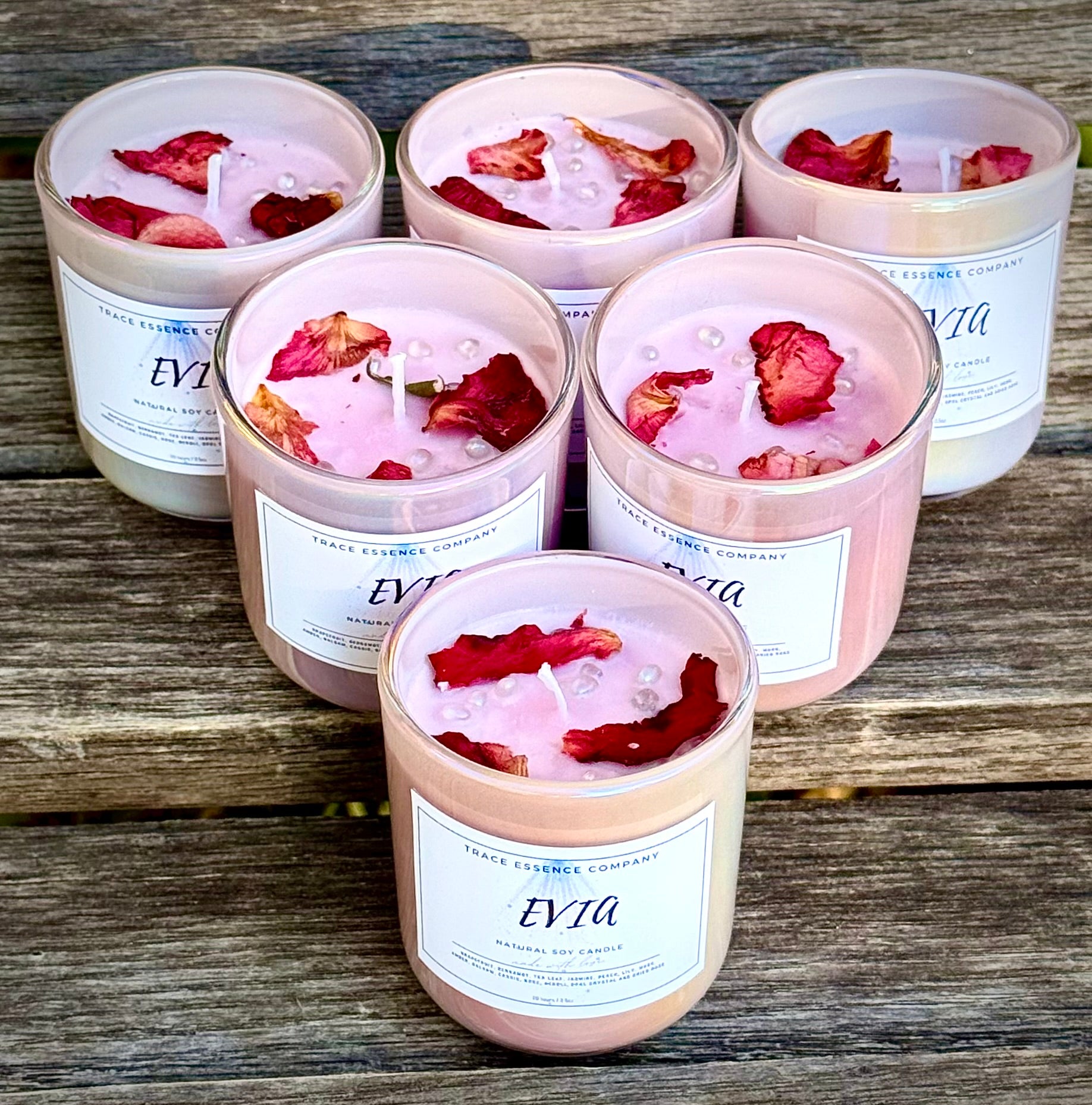 The Mini Evia candle is named to honor both Eva and her unborn child, Sophia, blending their names into one to reflect their inseparable connection and lasting legacy. It is a heartfelt tribute to life, love, and hope, created to celebrate their memory and the profound impact they had on the lives around them.