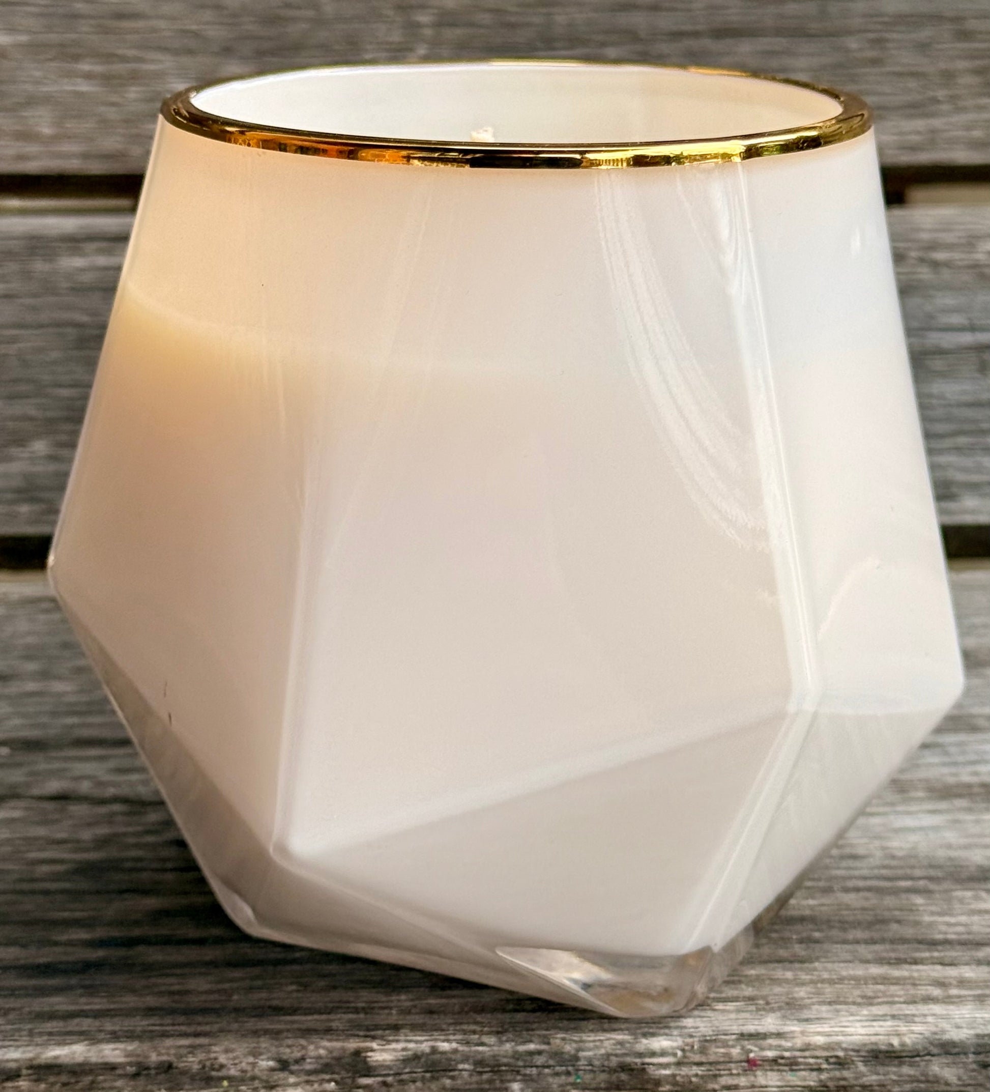 ✨ 14oz White & Gold-Rim Geometric Glass — A luxe statement piece that glows beautifully with every burn.
