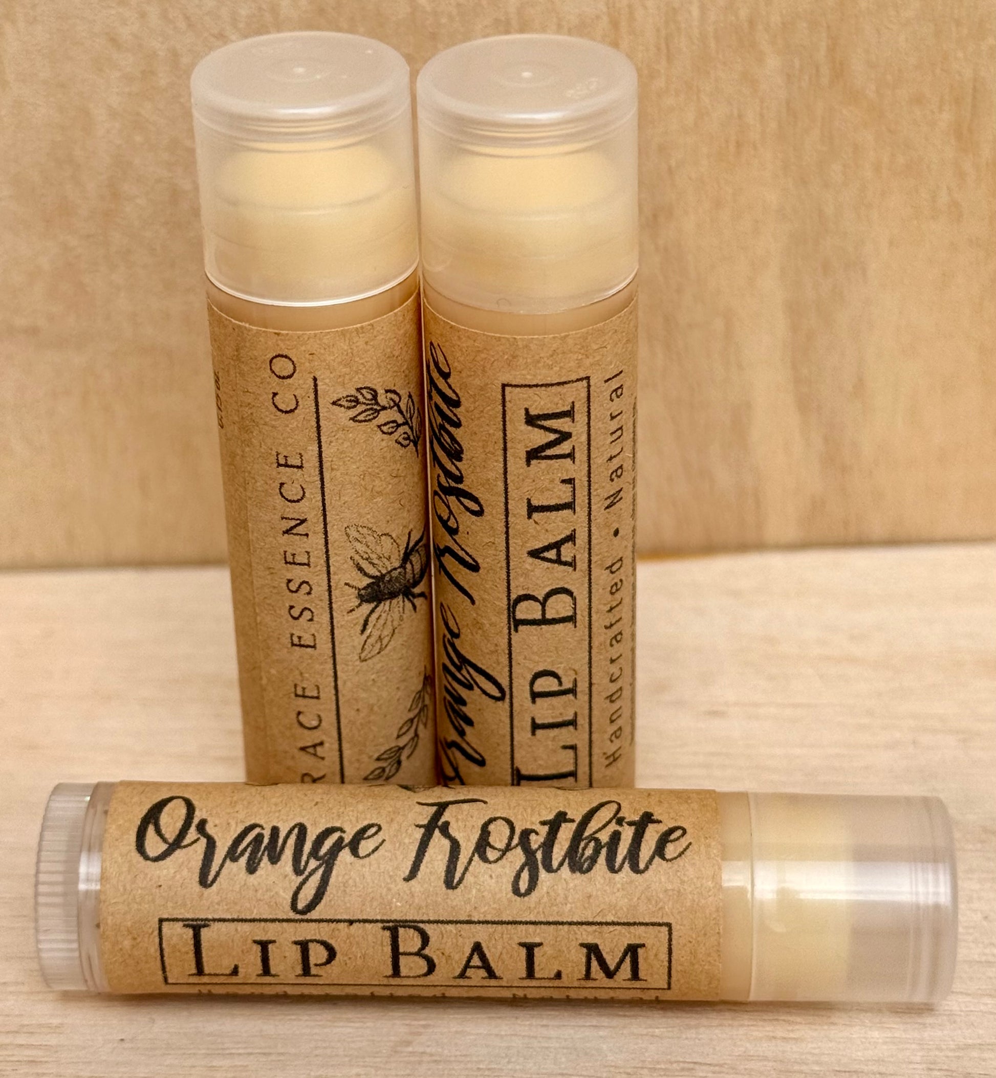 Meet Orange Frostbite, a cozy winter lip balm that wraps your lips in the nostalgic comfort of spiced orange. A rich, aromatic blend of orange peel, clove, and cinnamon melts into a smooth base of sandalwood, creating a hearty bouquet reminiscent of festive potpourri and warm winter nights.
