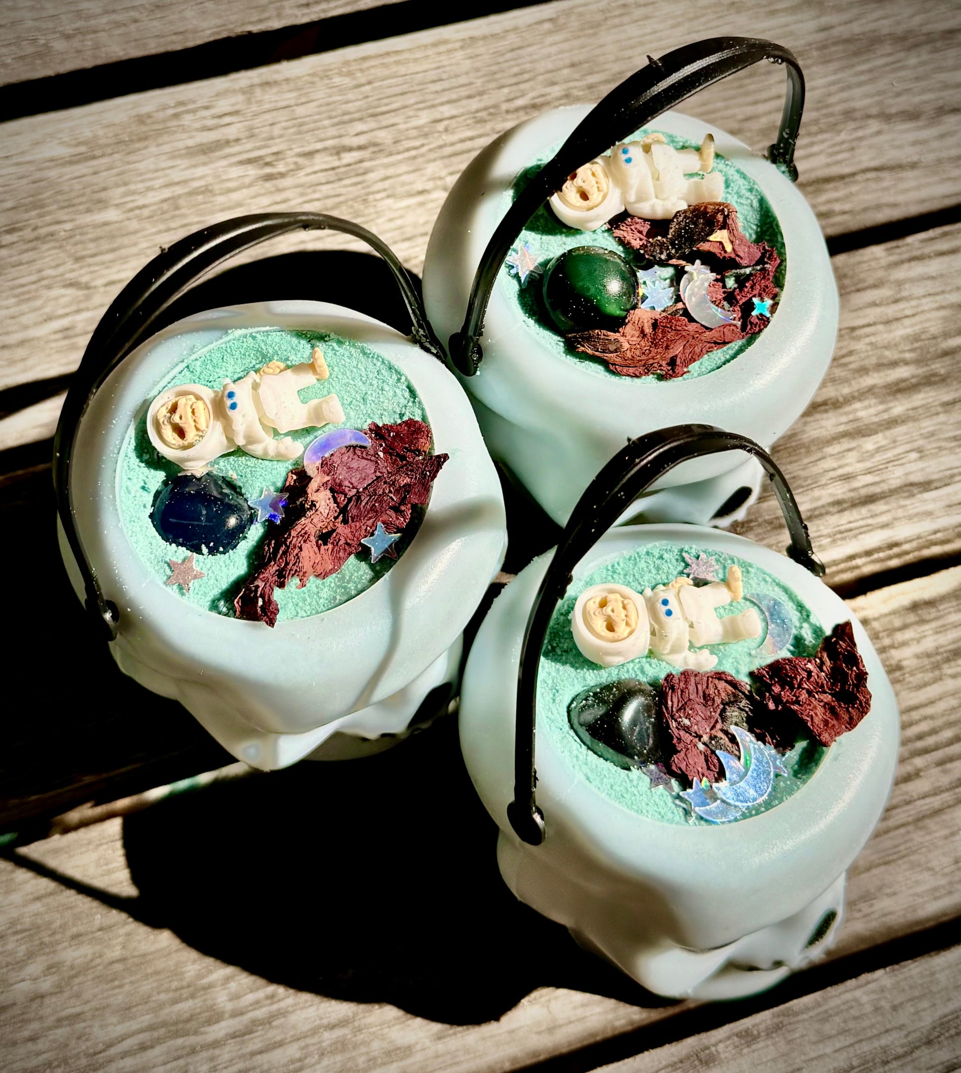 ✨ Note: Every cauldron/rounded bath bomb is handmade with love, making each one uniquely designed, with varying stone types and decorative details.