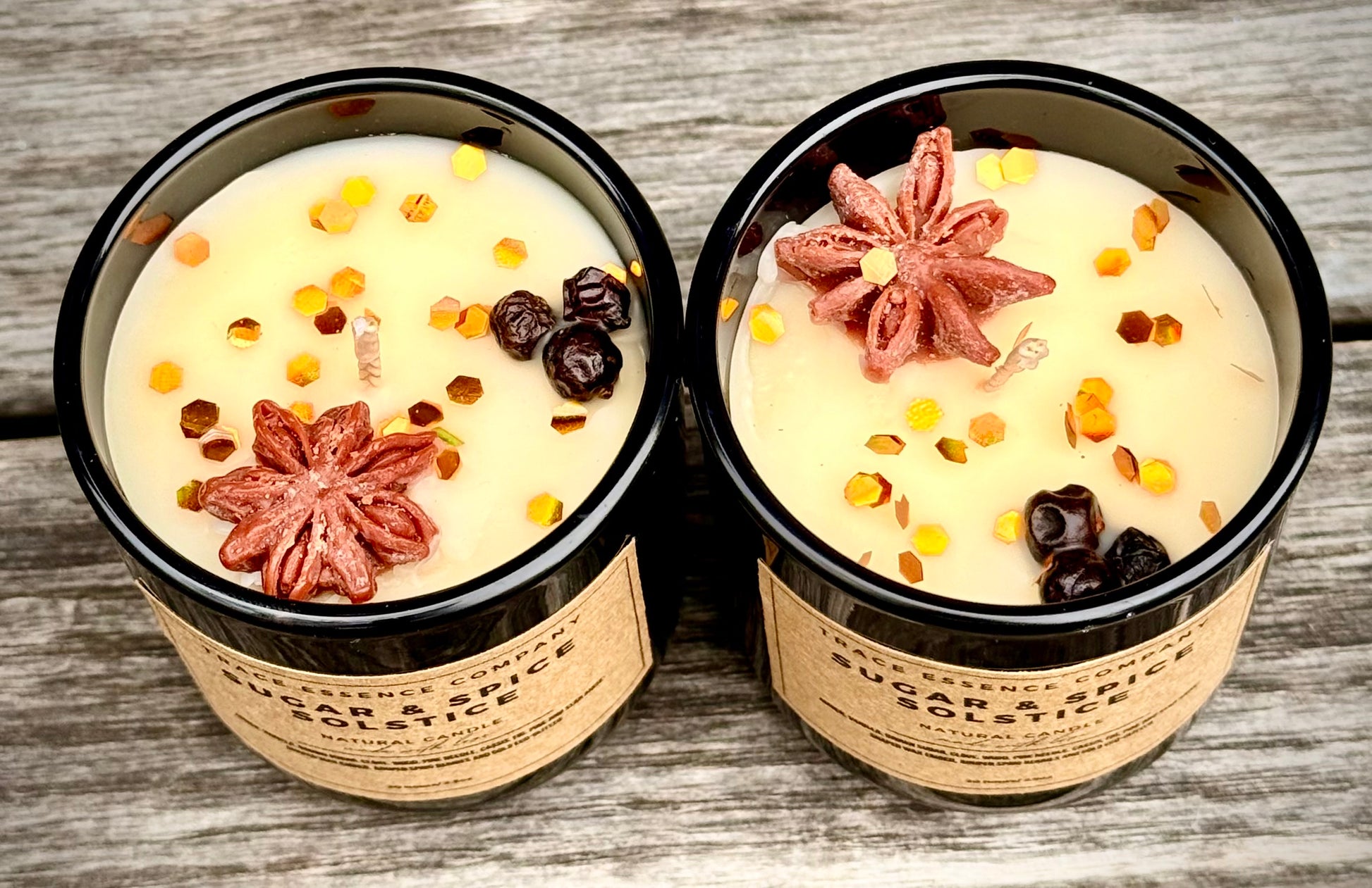 For a sleek, modern twist, Sugar & Spice Solstice also comes in a 2.5oz glossy black candle vessel—perfect for small spaces, gifting, stocking stuffers, or sample sizes.
