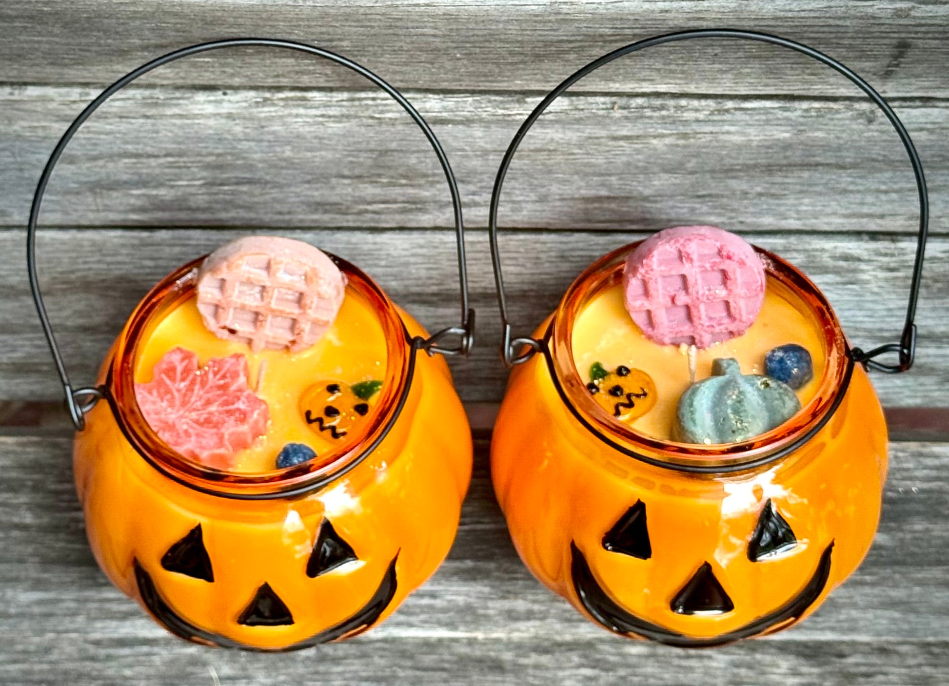 Topped with a mini glass pumpkin, waffle, and blueberry wax embeds, and sprinkled with eco-candle glitter — it's a full fall fantasy in every flicker.