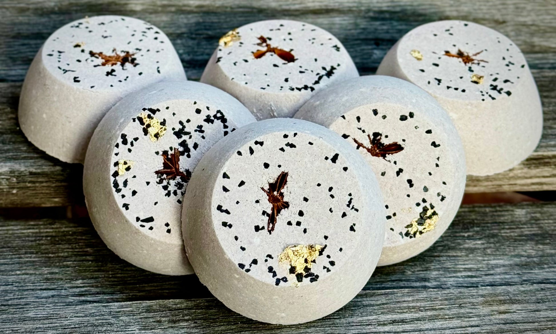 Sink into the smoky elegance of Tobacco Drift—a sultry, grounding shower steamer that wraps you in warm notes of sandalwood, cured tobacco, and a whisper of vanilla. Each cube is crowned with a whole star anise, kissed with black lava salt, and finished with a glint of gold flake—an earthy ritual with a touch of luxury.